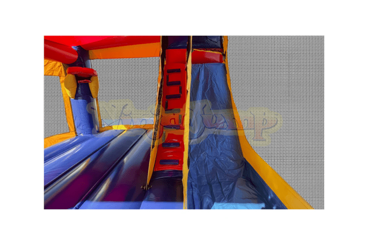 This C4 combo bouncy castle brings an air of majesty and imagination to any event. With a pair of regal blue and red towers and sunny-colored walls, this bouncy castle is sure to attract little princes and princesses for hours on end! Each player can enjoy action on a wet or dry slide, or conduct their royal duties from the large interior jump. This C4 bouncy castle combo is part of a line of royal, palace-style jumpers from Ninja Jump, with alternate colors and combos, designed to fit in with any theme or event.