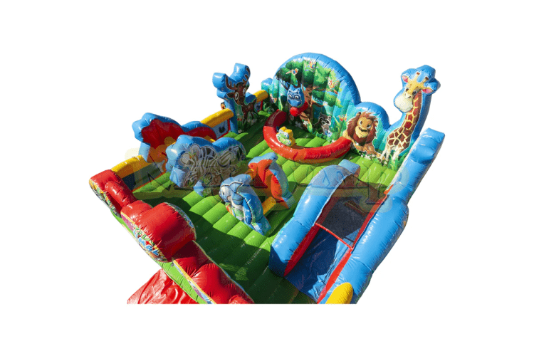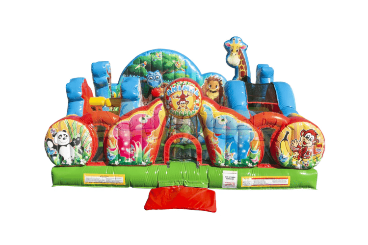 The Animal Kingdom is designed for younger kids ages 6 and under. Parents and chaperones can easliy monitor from above with a clear view of the inside. This inflatable has all kinds of fun activities including obstacles, a small slide and room for bouncing. The little guys will love this one! Maximum recommended weight is 100 lbs per person.